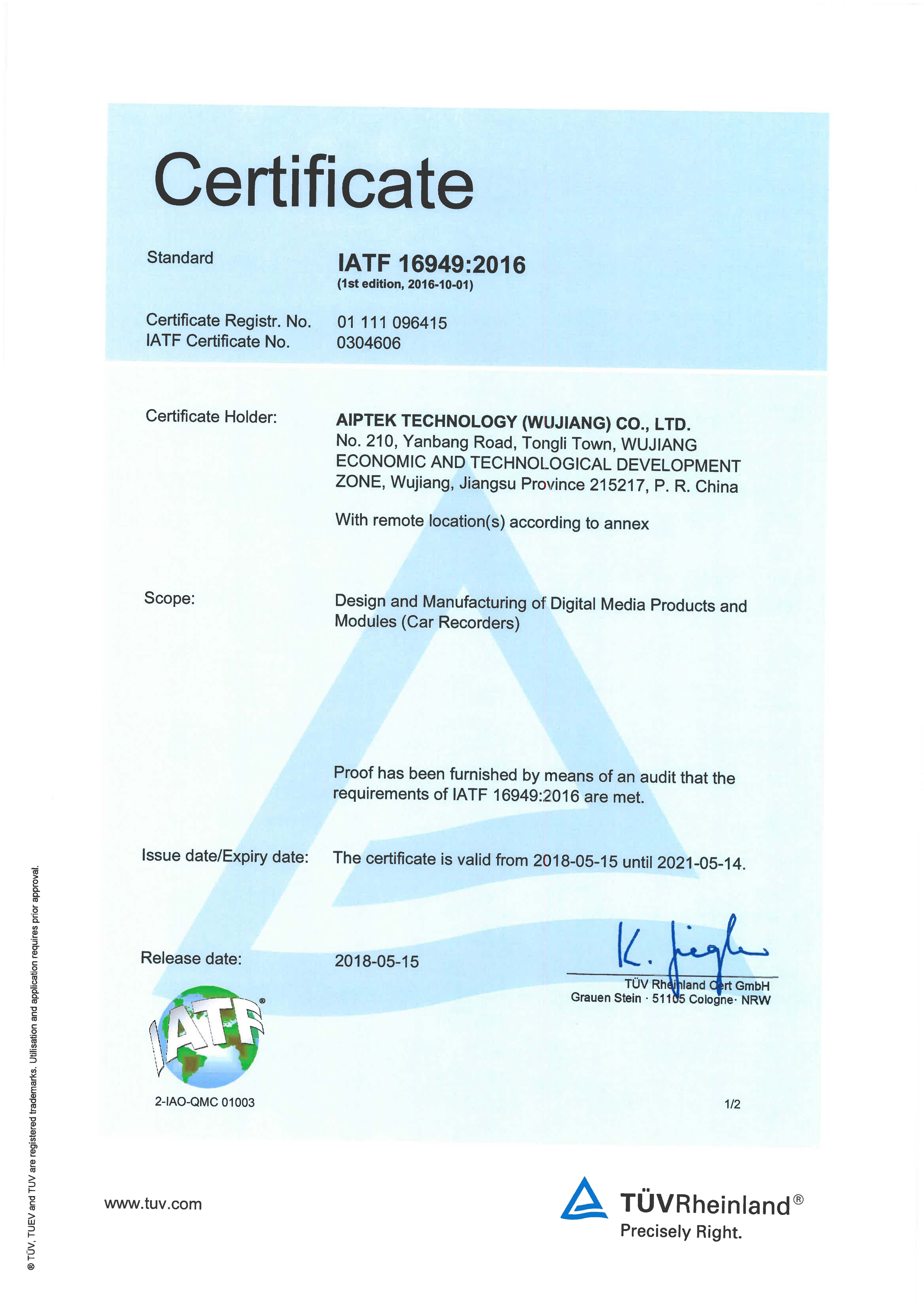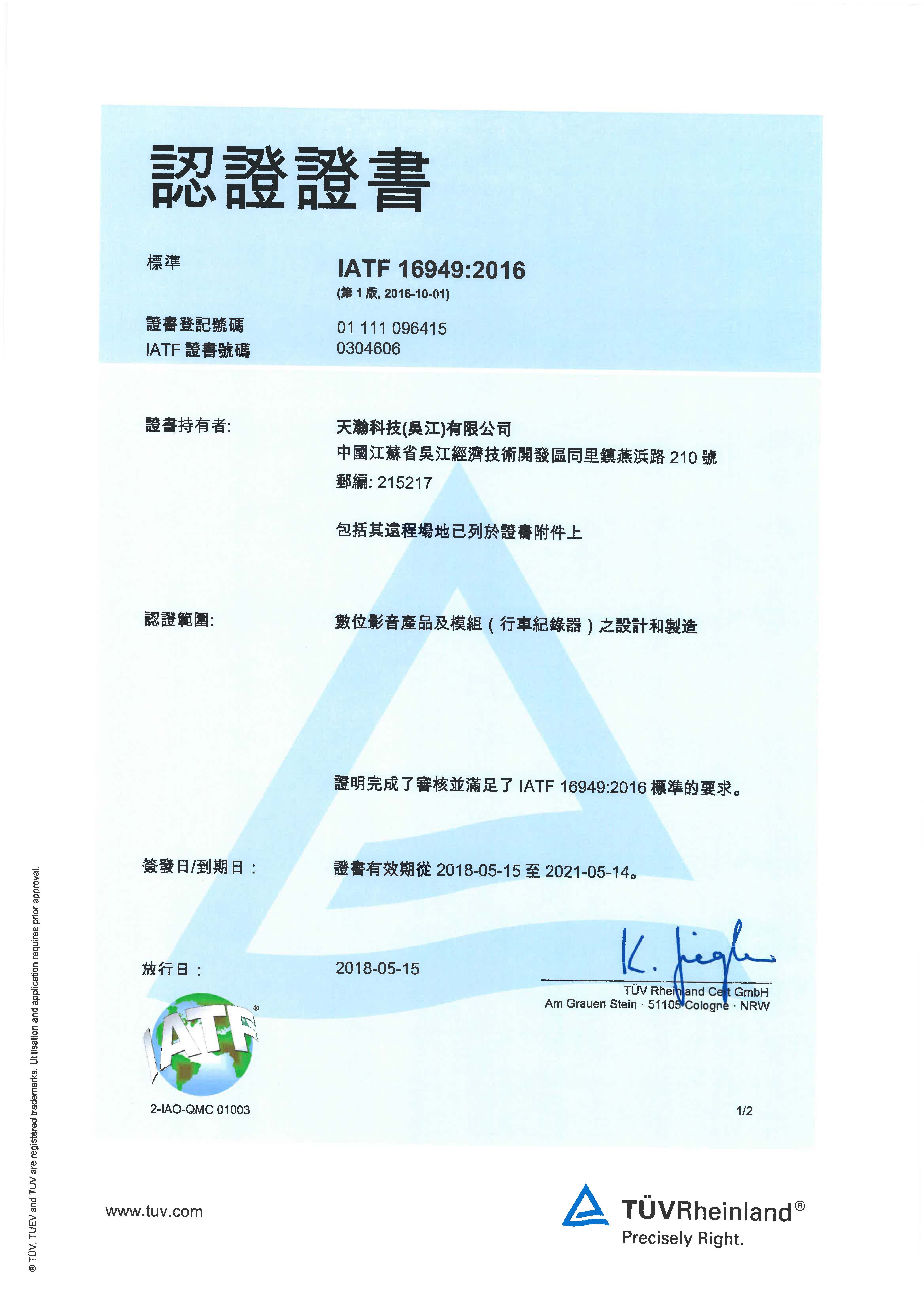 IATF-16949已於 5/14取證
